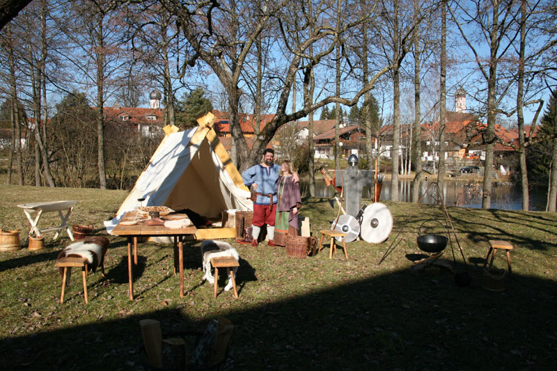 lernen und profitieren. Unsere Berufe lassen uns leider nicht die Zeit für ein solches Engagement. Wir betreiben das als Hobby, ohne den Anspruch auf Authentizität zu erheben. Wie Eingangs erwähnt bemühen wir uns um eine Darstellung, die sich möglichst an Originalen ausrichtet. Das ist ein ständiger Prozess, der nie endet. Mit jedem Buch lernt man dazu. So haben wir manches Requisit, auf das wir vor einem Jahr noch stolz waren, inzwischen verschämt in der Versenkung verschwinden lassen und es wird manches, das wir jetzt noch verwenden, irgendwann durch etwas Neues ersetzt. Wir versuchen einfach eine Darstellung in Anlehnung an Originalfunde. Mit jedem kleinen Schritt kommen wir unserem Anspruch ein wenig näher, was für uns das Hobby "Erlebte Geschichte" immer wieder neu und aufregend macht.