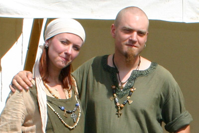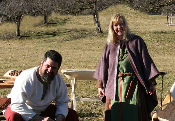 Warum gerade Wikinger? Das hat sich irgendwie ergeben. Zuerst galt unser Interesse dem Hochmittelalter (bei den Damen schon der wunderbaren Gewänder wegen), dann haben sich unsere Kinder auf Wikinger spezialisiert und dem haben wir uns angepasst, um als die „Wiki-Eltern“ dazu zu passen. Mittlerweile fühlen wir uns in unseren Wikinger-Gewändern sogar sehr viel wohler als im Burgfräulein- und Rittergewand.
